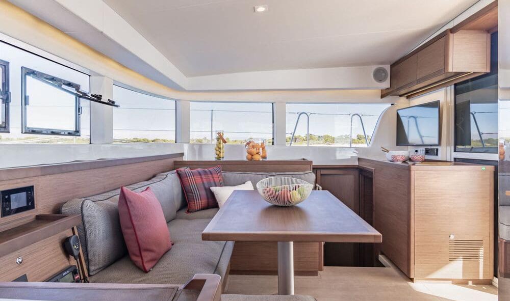 Up forward there is easy transfer across the trampoline and at the helm-station you have a walkway behind the helm seat that makes cockpit to deck movement a breeze.